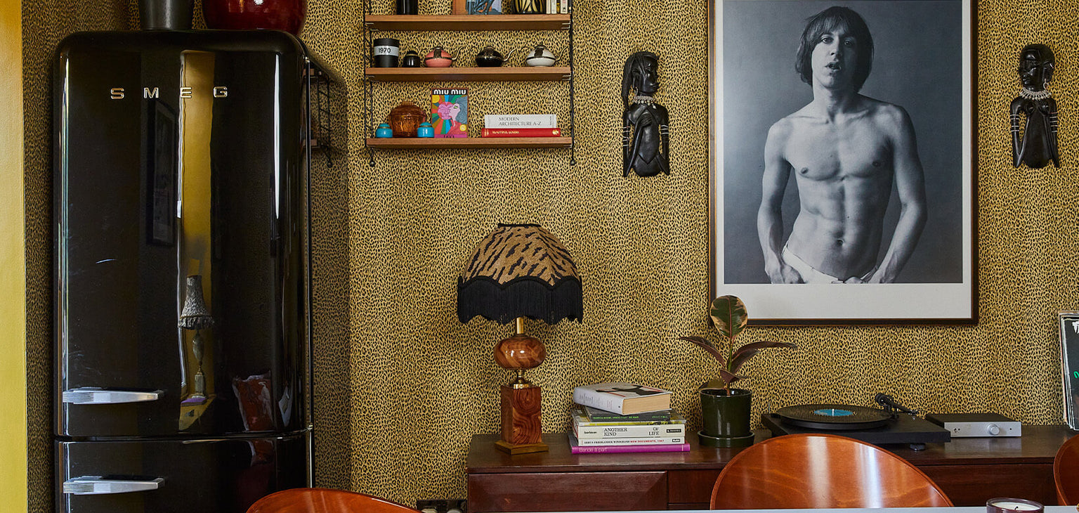 For this project, we head to the dining room. Carla wanted something dramatic, bold and wild, and who better to look to for inspiration than punk idol Iggy Pop? More specifically, Iggyโs leopard print jacket from the album artwork of 1973โs Raw Power; draped in animal print and allure - like any self respecting person should be - Carlaโs dining room was about to be too.