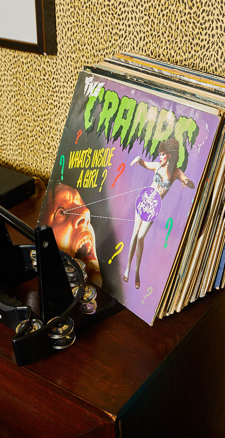 And taking centre stage, a framed photograph of Iggy in all his splendour, looking out onto the room he inspired.